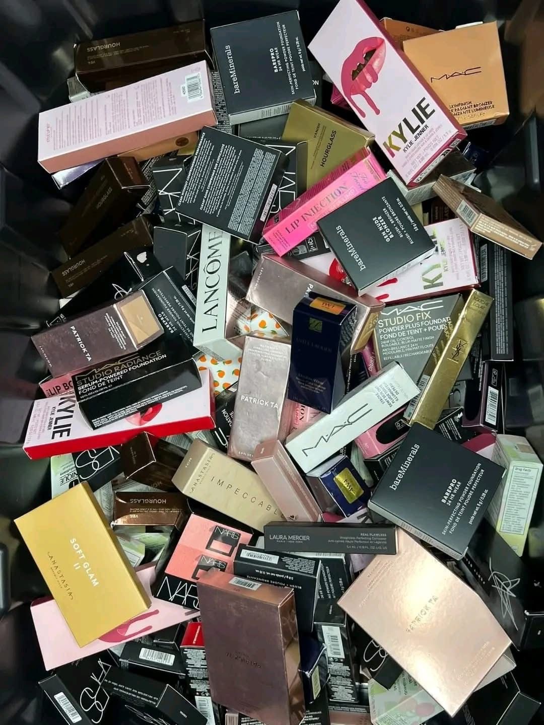 Mixed make up pallet featuring top beauty brands and essential cosmetic products. Ideal for online and retail resale. High demand with strong profit nargin