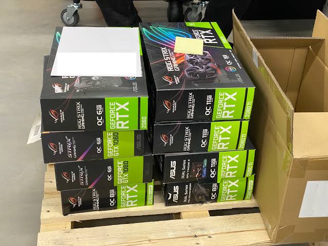 Bulk pallet of gaming graphic cards used for high performance computing and gaming setups